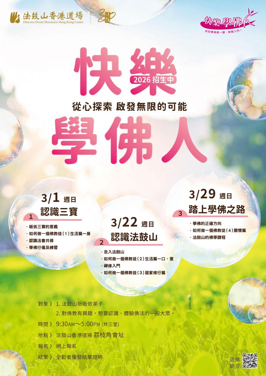 誠邀您來參與「快樂學佛人」,以輕鬆、活潑、實用的方式進行,帶領新信眾踏上學佛之路,一同輕鬆自在過生活。