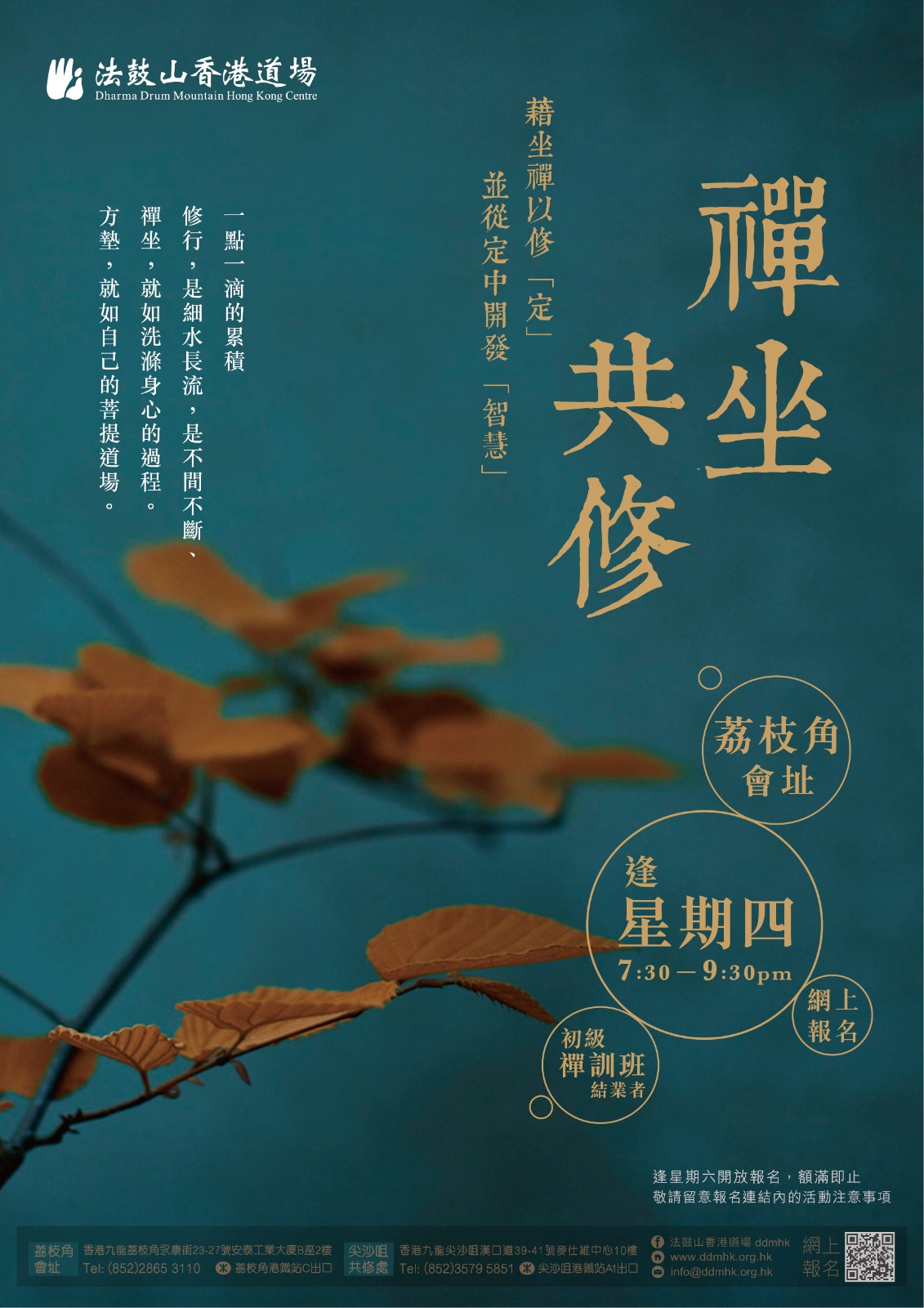 籍坐禪以修「定」,從定中開發「智慧」。安住身心需要一點一滴地纍積;細水長流,以洗滌身心,時刻自在。