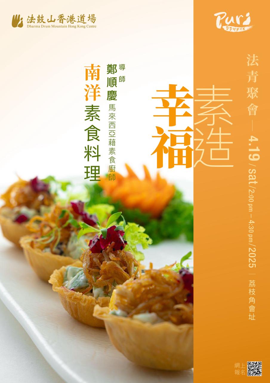 透過專注的烹煮過程,學習如何將禪意融入烹飪,安住於每一個動作,感受「素造幸福」的寧靜與喜悅。無論是烹飪新手還是素食愛好者,都能在這場充滿香氣與覺知的旅程中,素造自己的幸福。